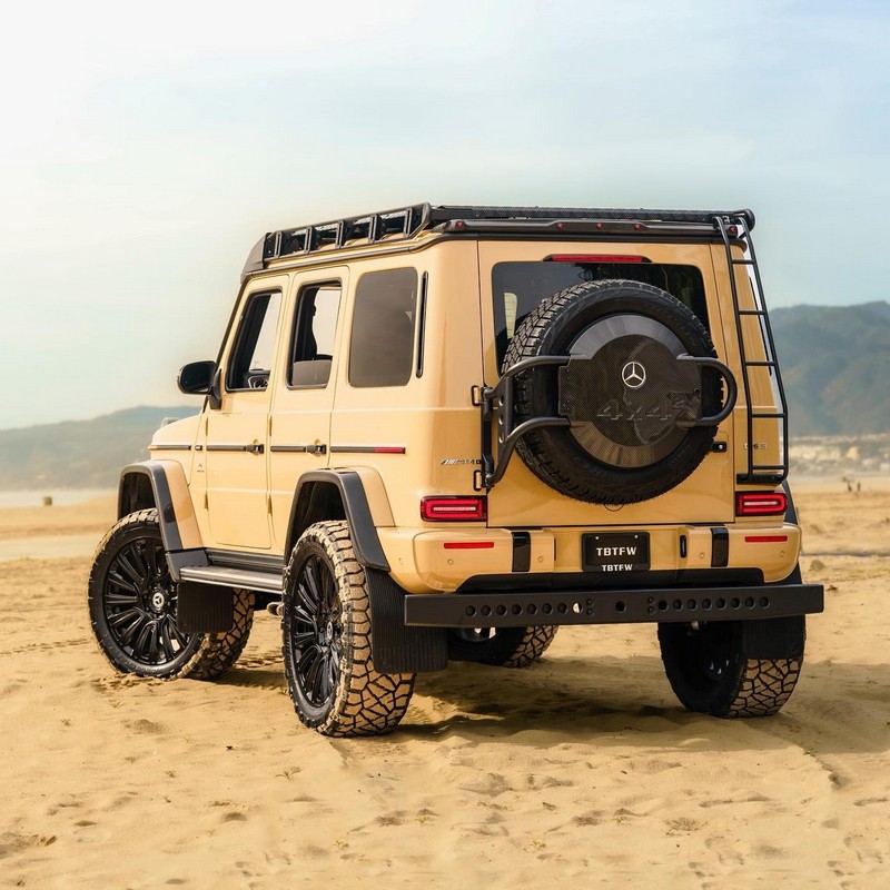This is due to the many upgrades it boasts over the regular G 63, which comprise the portal axles, independent suspension, and improved approach and departure axles, all of which make it a better off-roader overall. The roof rack with a ladder at the rear to access the stuff stored there, extra LED lights mounted above the front windscreen, fender flares, and a few other bits and bobs further set it apart from the non-4×4² version, and make it a more desirable alternative to it.